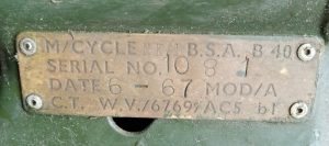BSA WD B40 Contract Plate 1967
